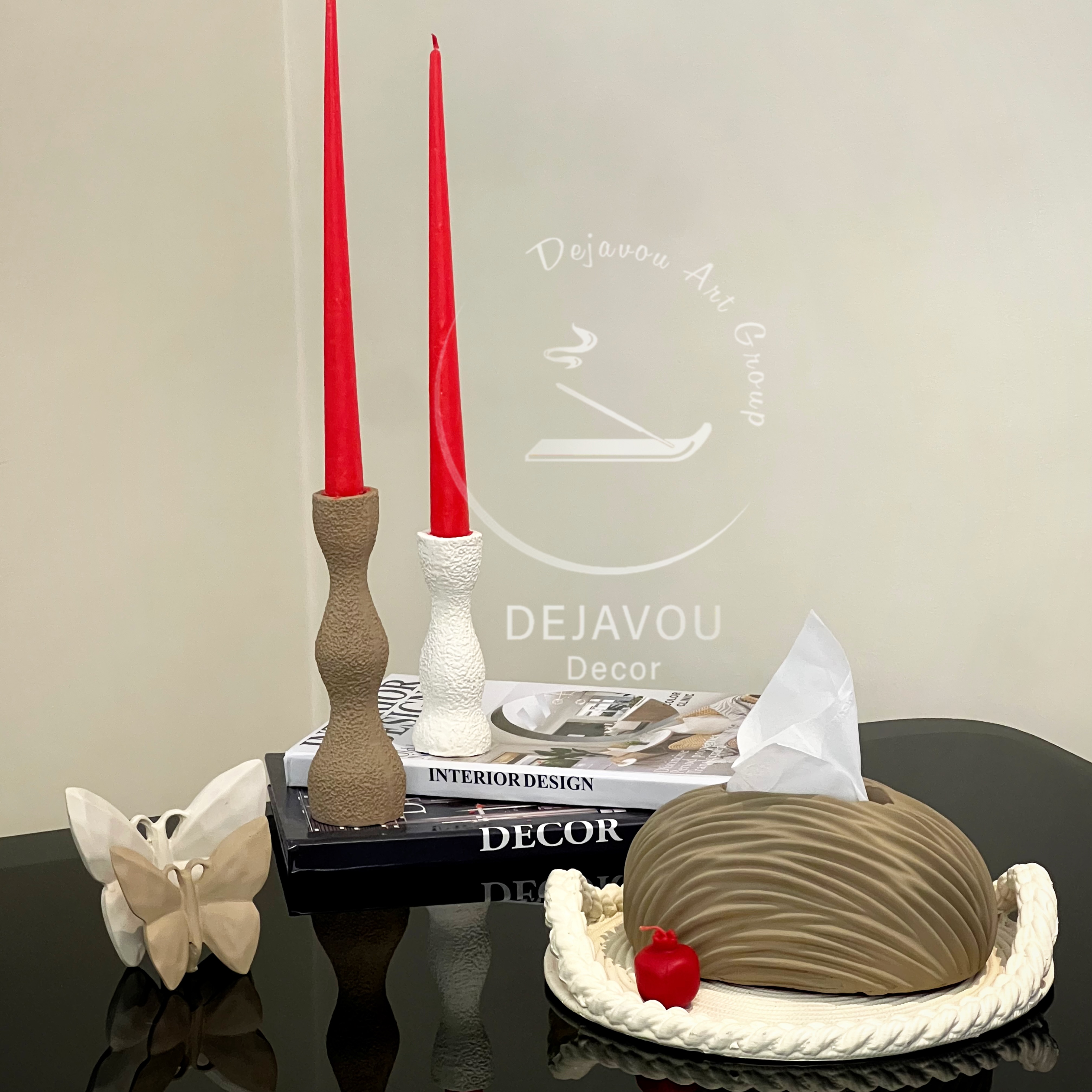 قابل ست کردن و چیدمان با محصولات مختلف از جمله مجسمه، گلدان، جادستمال کاغذی و....