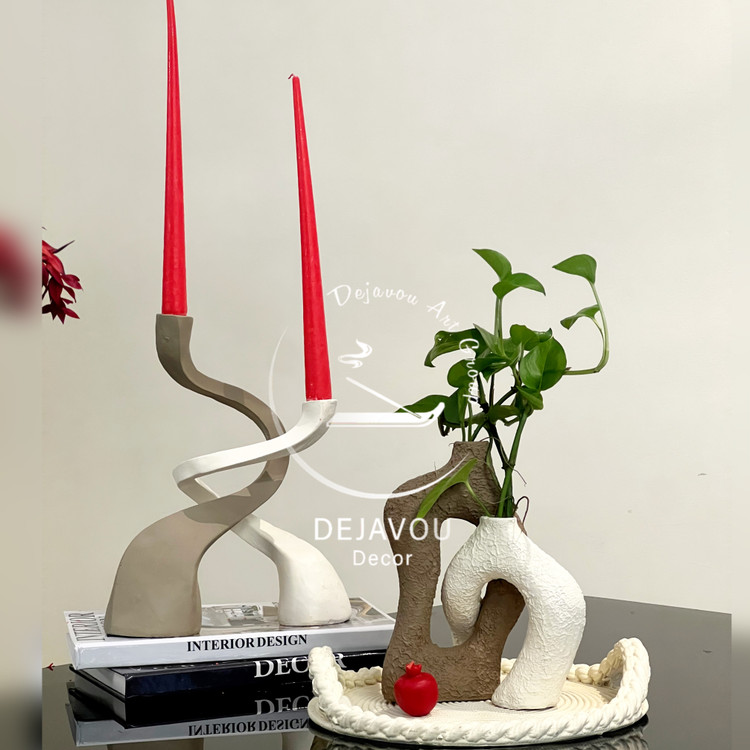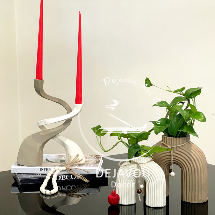 ست دو عددی شمعدان پیچی در ۲ رنگ : کرم_نسکافه ای و سبزیشمی_کرم