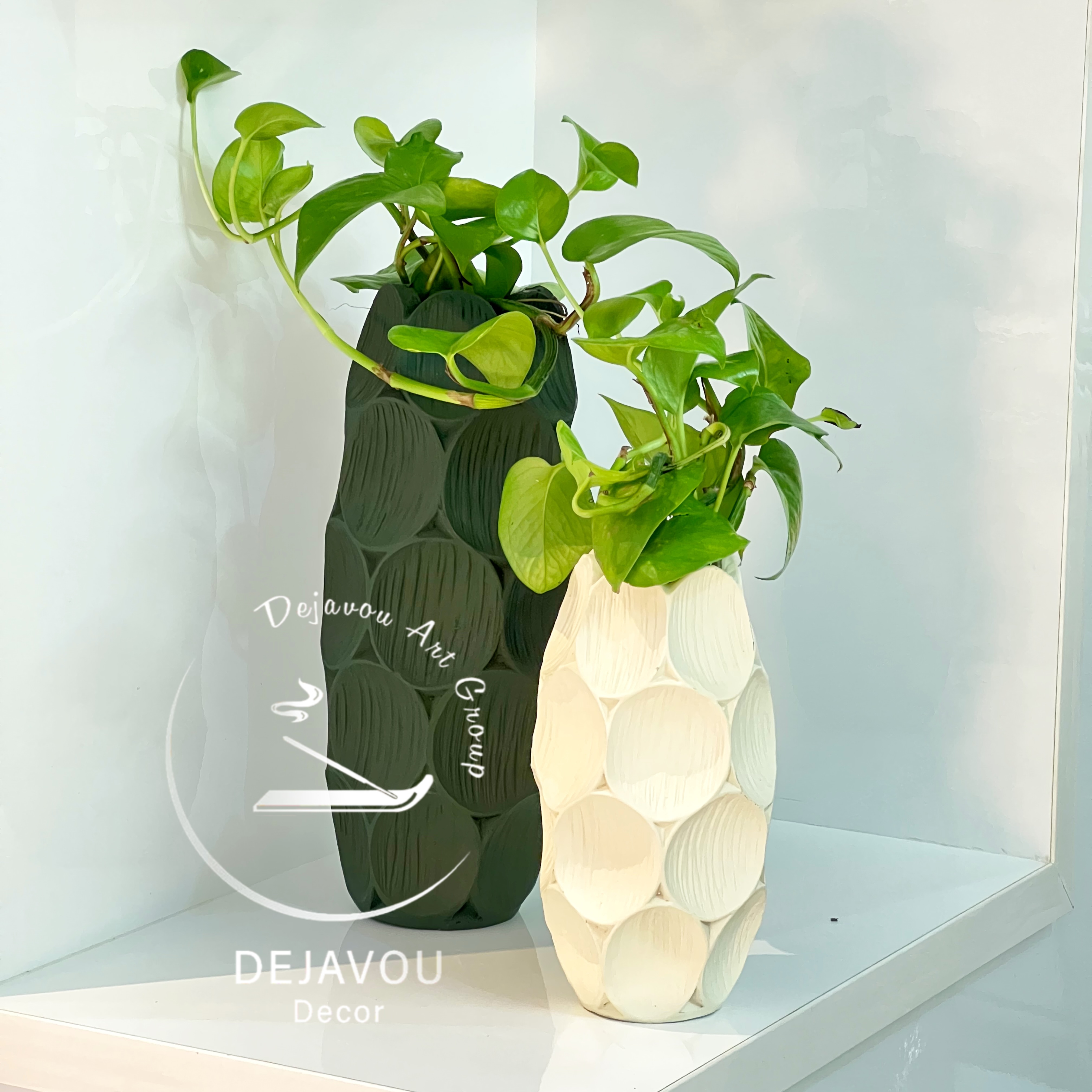 ست دو عددی گلدان در ۲ رنگ : کرم_نسکافه ای و سبزیشمی_کرم