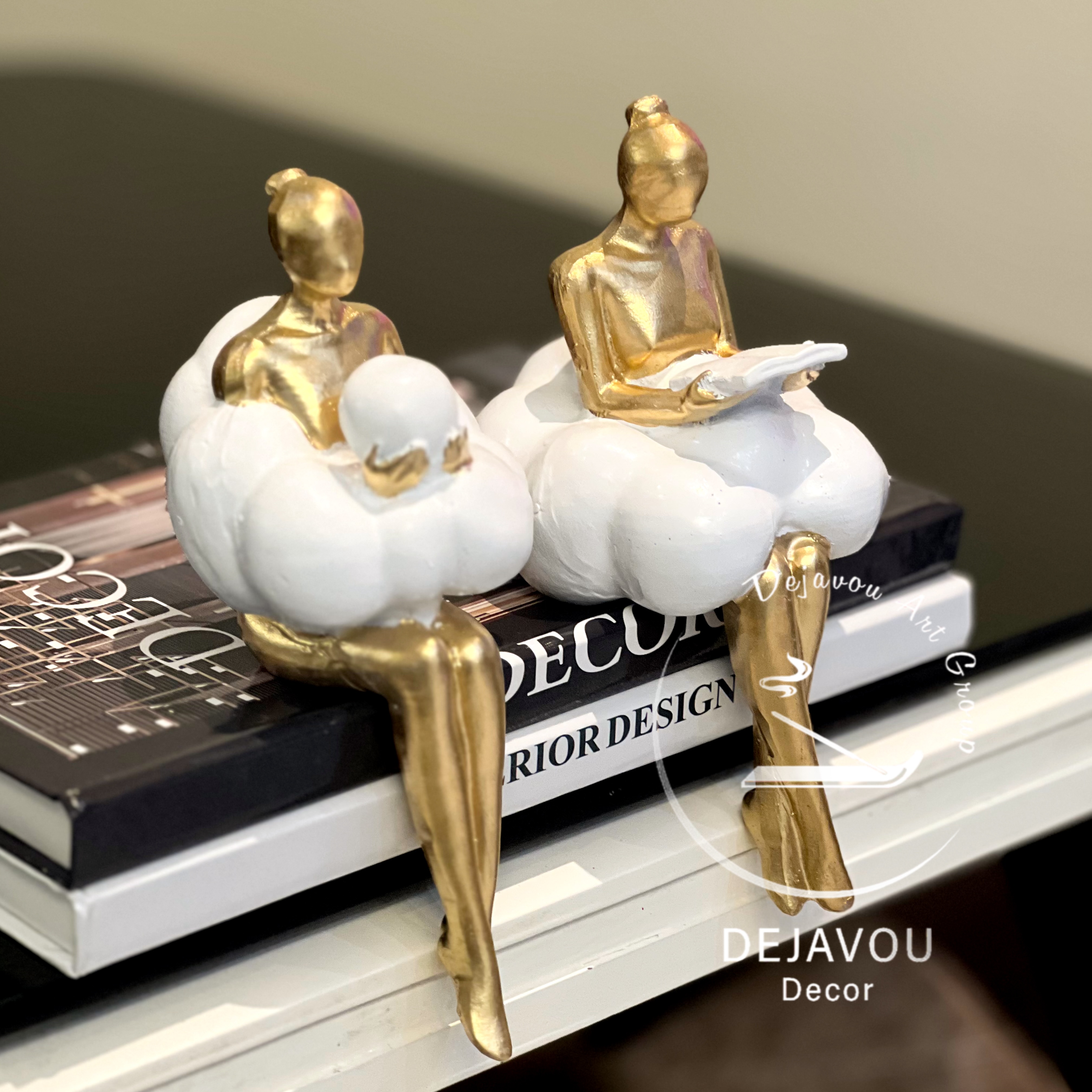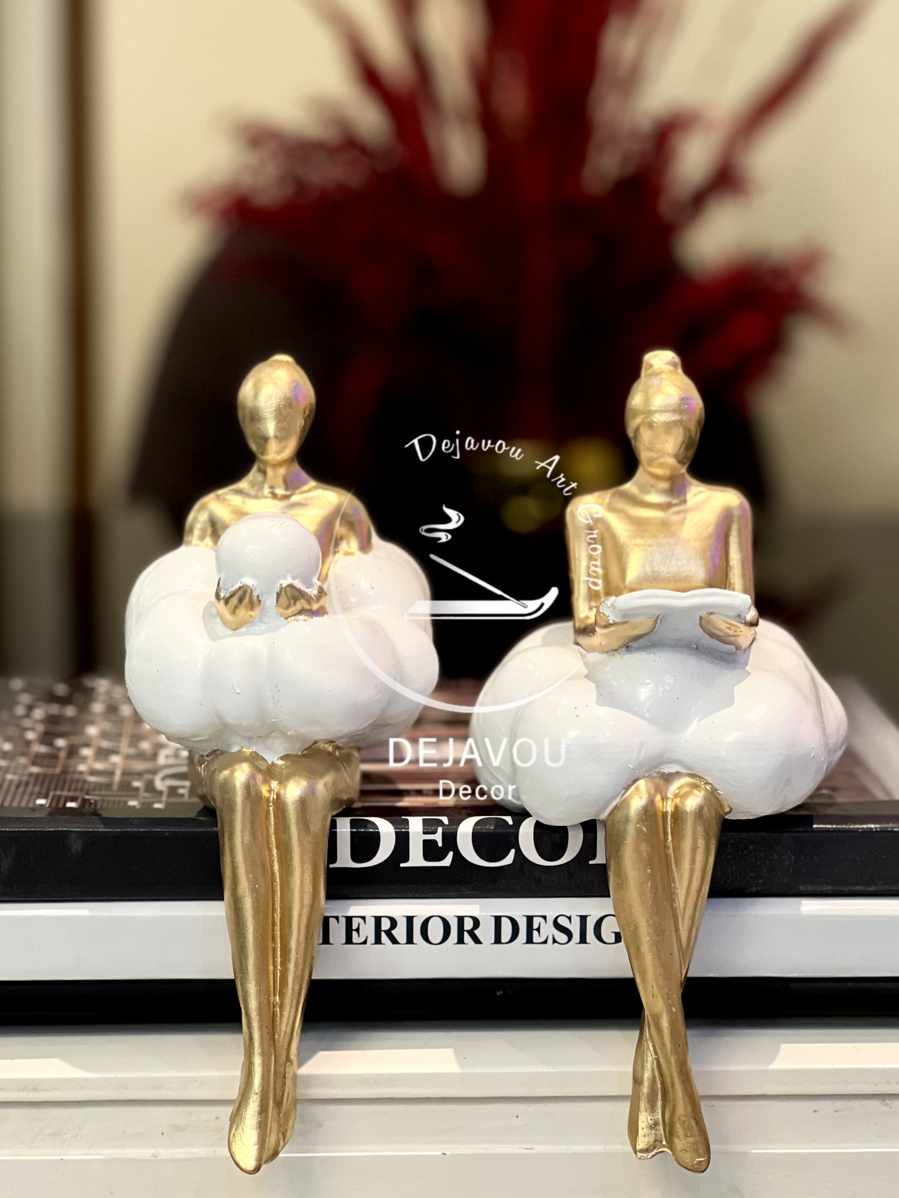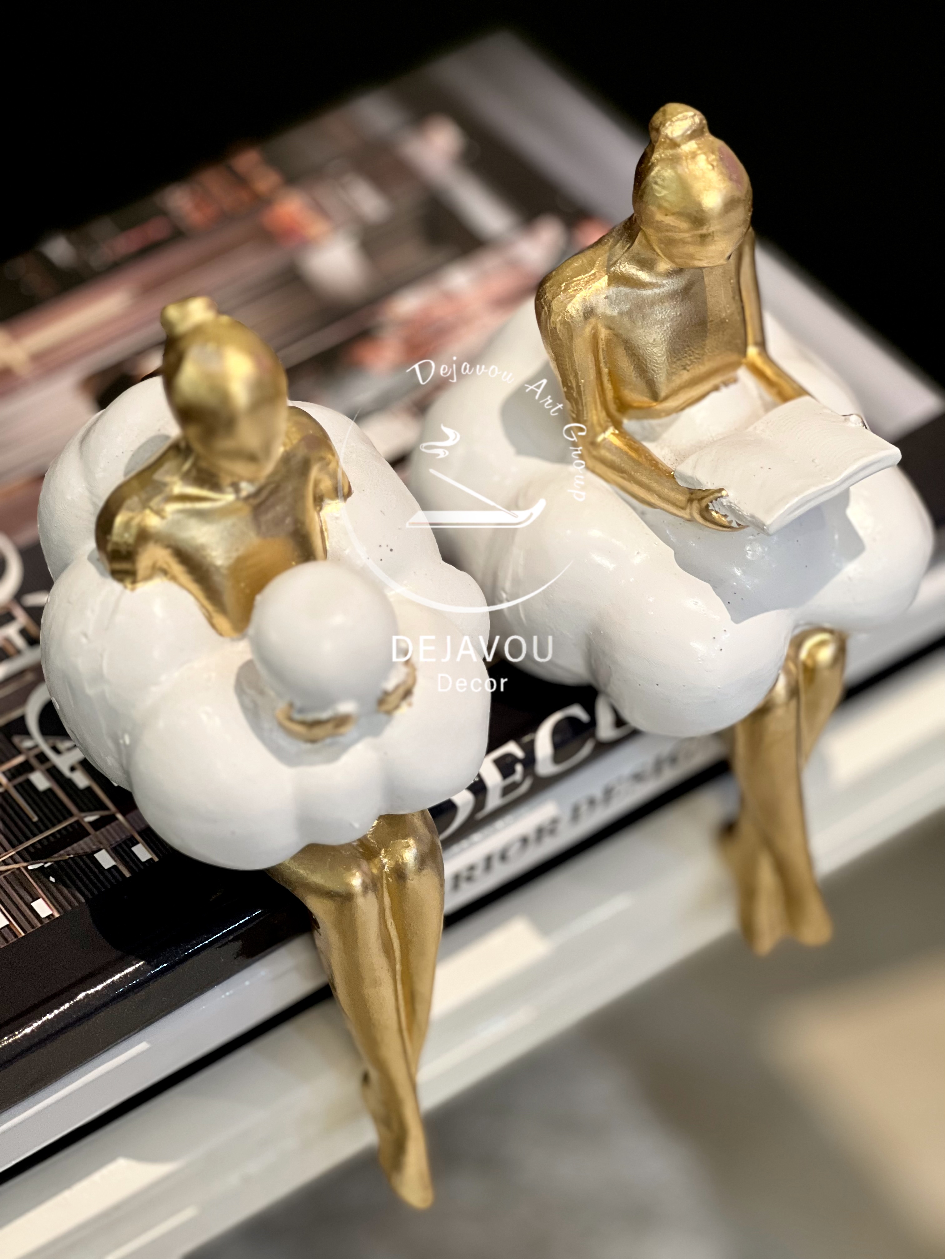 ست دو عددی مجسمه دختر ابری ابعاد: ارتفاع در حالت نشسته: ۱۴ سانتی متر ارتفاع با پاهای اویز:۲۴ سانتی متر عرض : ۱۲سانتی متر