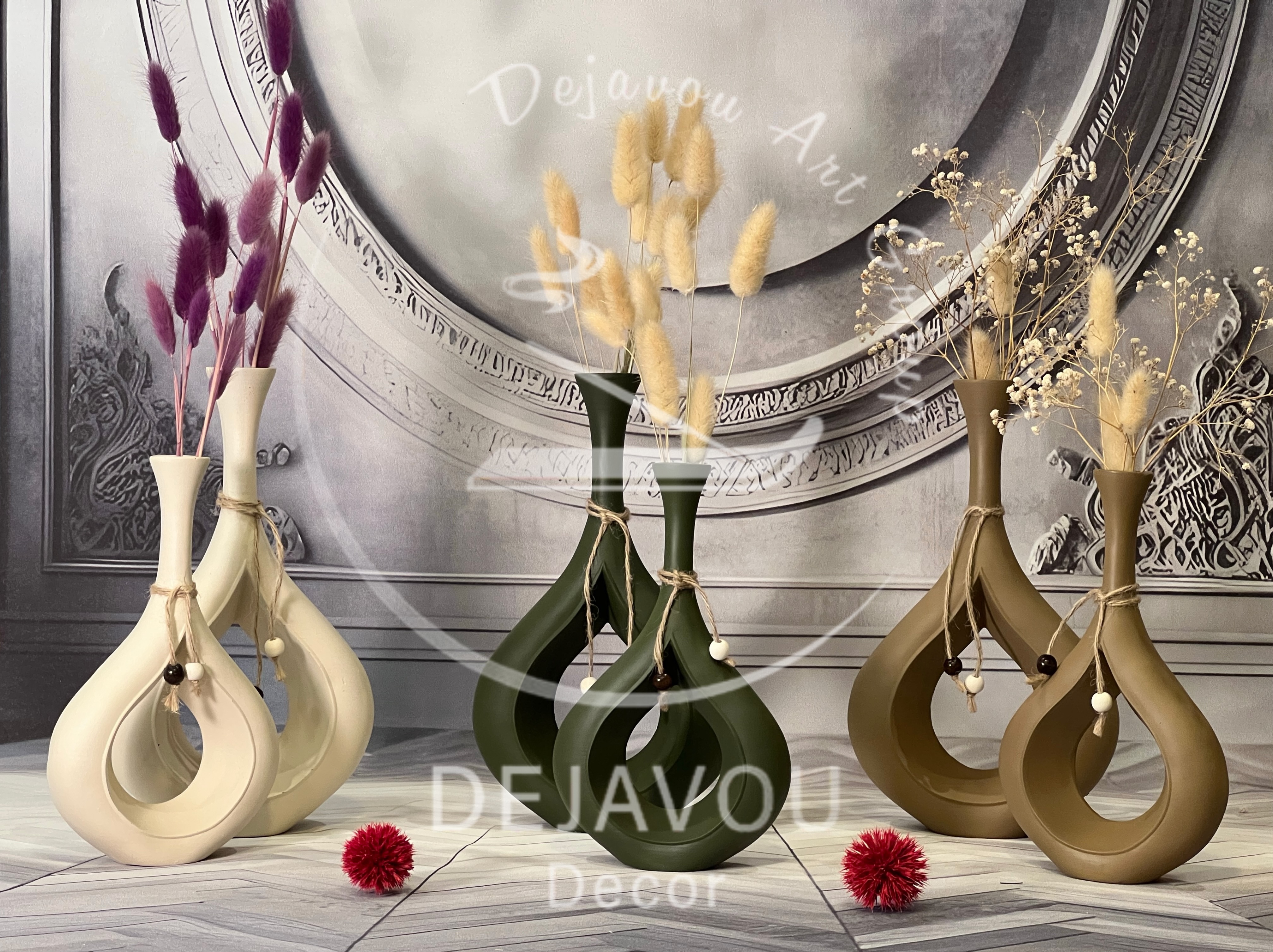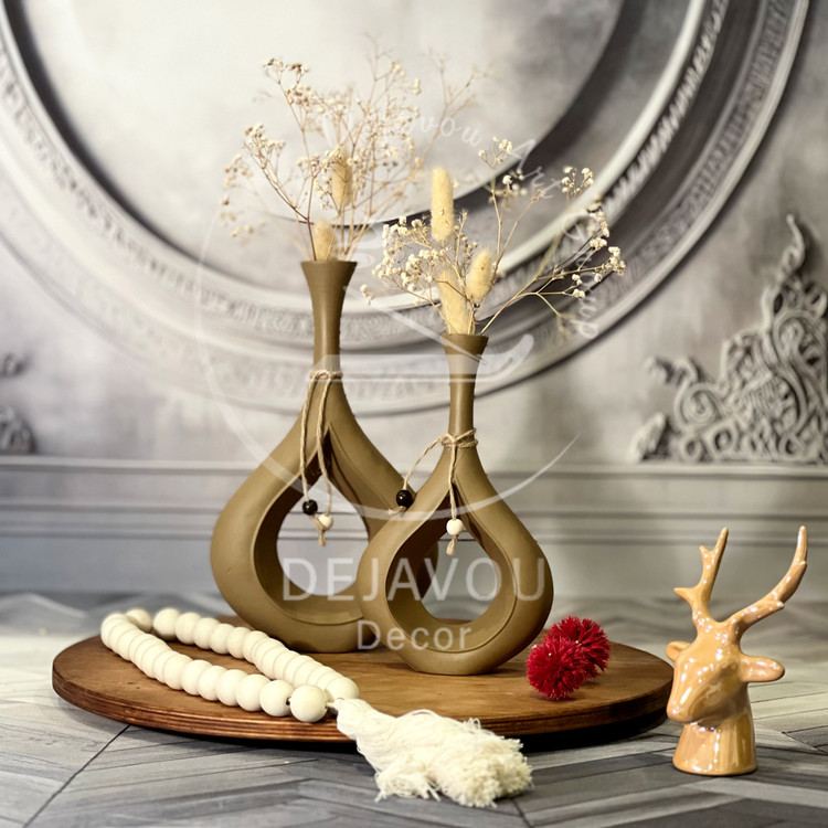 ست دو عددی گلدان طرح اشک در ۲ رنگ : کرم_نسکافه ای و سبزیشمی_کرم