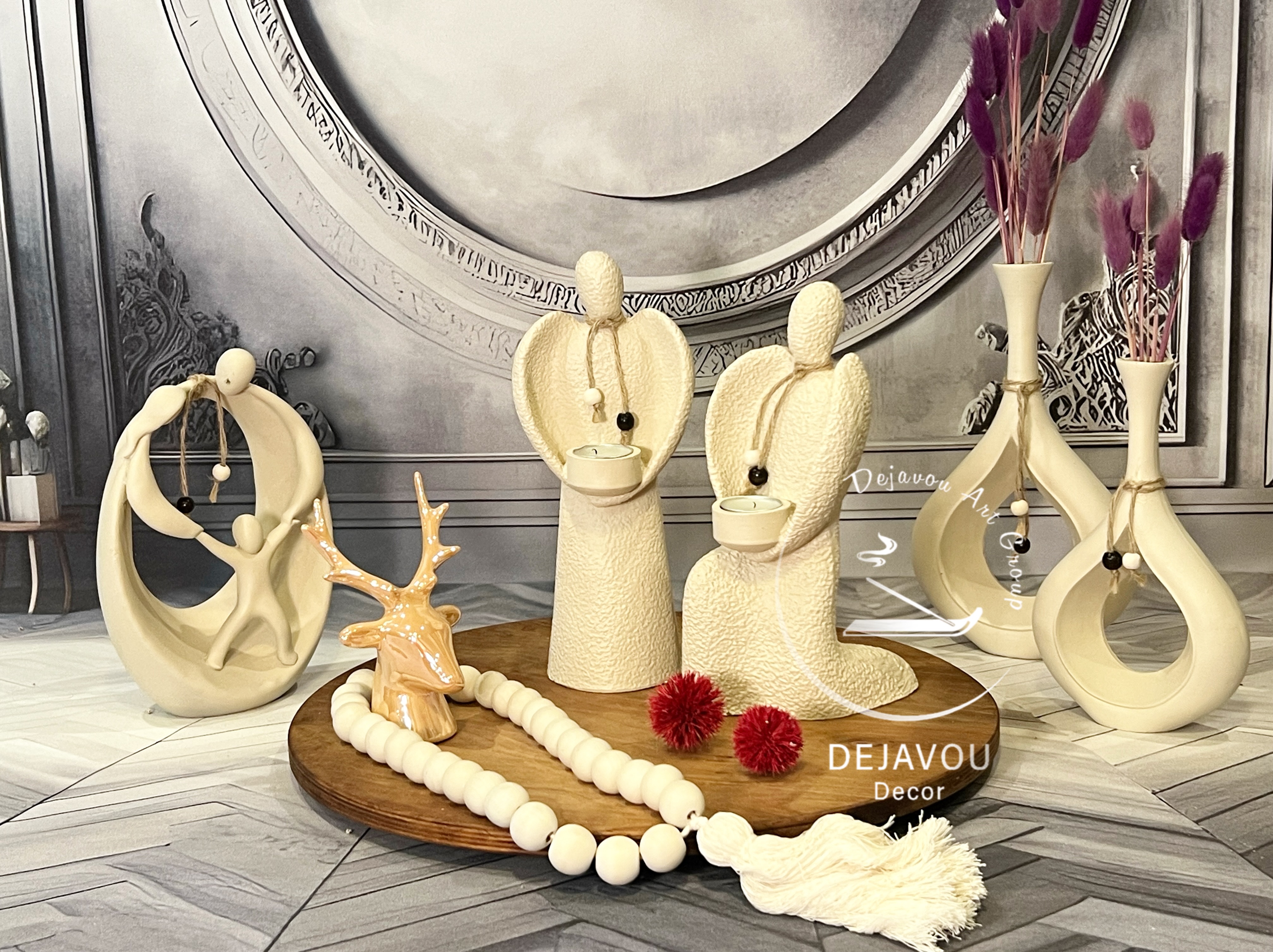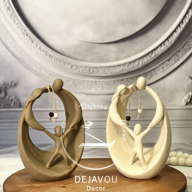 مجسمه دکوری طرح خانواده در ۲ رنگ : کرم_نسکافه ای