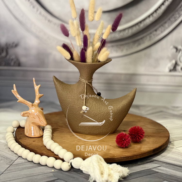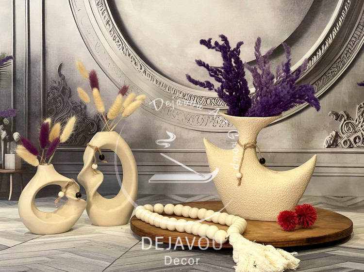 گلدان دکوری طرح کشکول در ۳ رنگ : کرم ،نسکافه ای و سبزیشمی
